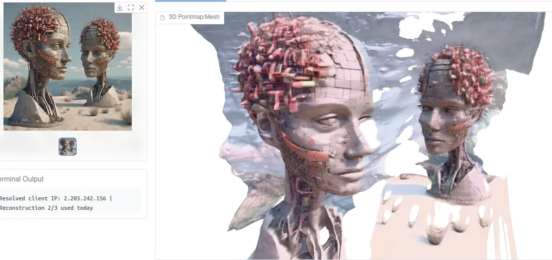 Tauche ein in eine neue Dimension der Kunst! Diese AI-Art-App verwandelt deine Bilder mit moderner, inferenzbasierter 3D-Rekonstruktion in beeindruckende 3D-Objekte. Egal ob Illustration, digitales Artwork oder Foto – in wenigen Sekunden entsteht daraus eine räumliche Version, die du aus jeder Perspektive entdecken kannst. Die Gradio-App bringt kreative Ideen direkt aus der 2D-Welt in den 3D-Raum und macht Kunst interaktiv, lebendig und völlig neu erlebbar. Lade dein Bild hoch und sieh zu, wie aus flacher Kunst echte Tiefe wird!
